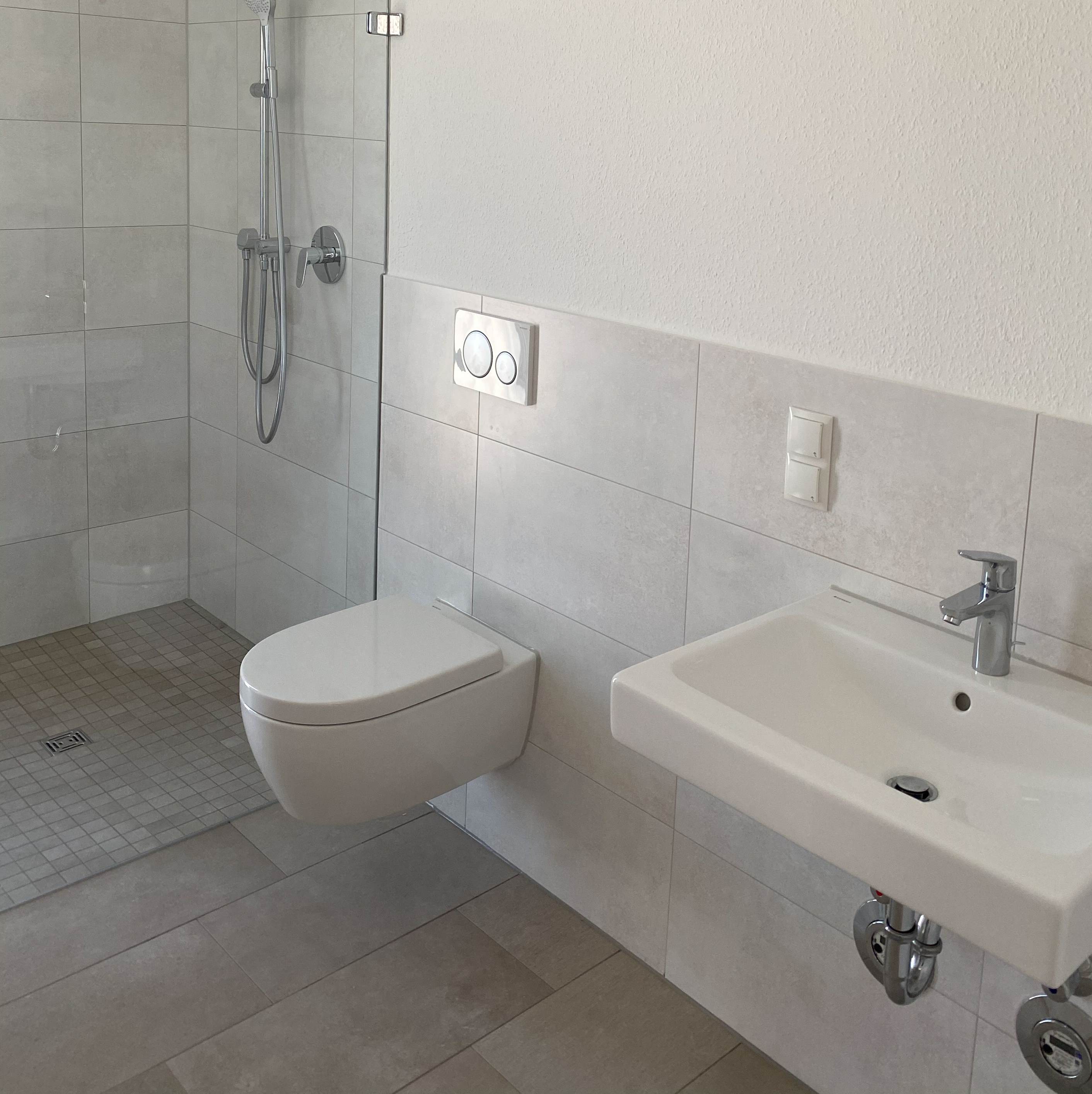 Die Auswahl bei den Bodenfliesen in Bädern, Dusch-WCs und WCs trifft der Käufer in Absprache mit dem Handwerker. Die Größe der Fliesen ist im Standard bis maximal 30 x 60 cm möglich. Die Farbauswahl erfolgt durch den Käufer zusammen mit dem Handwerker.